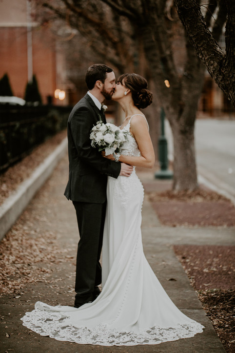 After the first look and some portraits, we went ahead and did the wedding party pictures. Once those were done, I took the happy couple back outside for more portraits. By this time, it was about 5:30, so the sun was setting and even though it was a cloudy day, we still got the soft, subtle light filtered through the clouds and some romantic street lights even came on towards the end. *Dreeeeeeam*